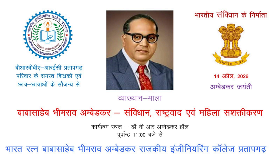 Pursuant to the above office memorandum, the institution was initially established under the name Rajkiya Engineering College, Pratapgarh. Subsequently, as per the decision of the State Government, the institution was renamed as Bharat Ratna Babasaheb Bhimrao Ambedkar Rajkiya Engineering College, Pratapgarh.