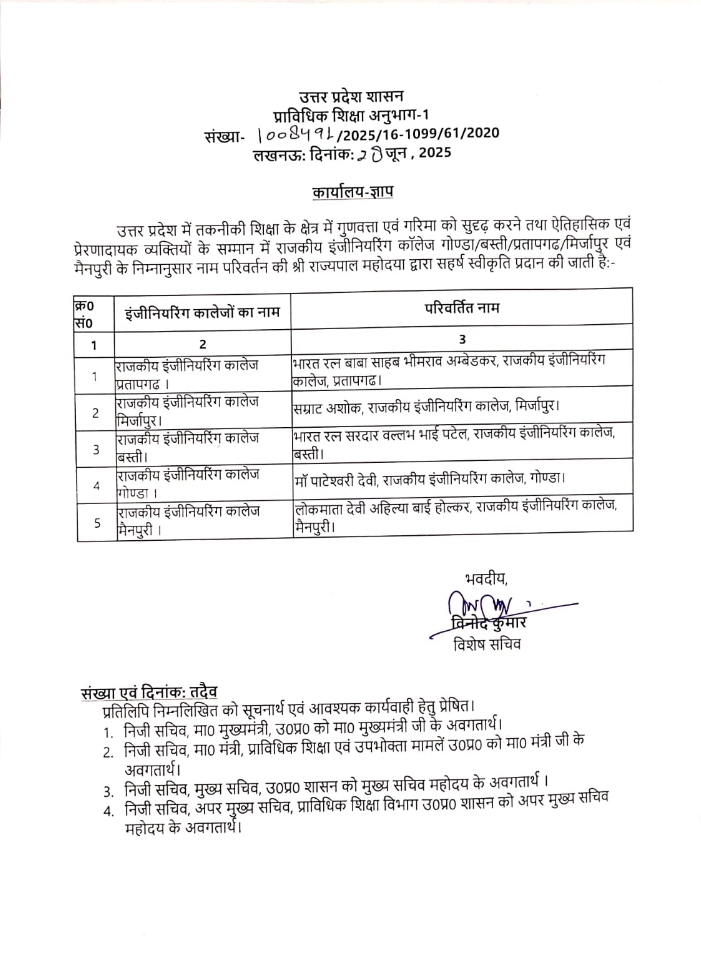 In order to expand the reach of quality technical education in the state of Uttar Pradesh, the government approved the establishment of rajkiya engineering colleges in the districts of Basti, Gonda, Mirzapur, and Pratapgarh. In furtherance of this policy decision the Department of Technical Education, Government of Uttar Pradesh, through Office Memorandum No. 2053/16-1-2023-14(54)/2014, Lucknow, dated August 2, 2023, accorded approval for the establishment and commencement of a Rajkiya Engineering College Pratapgarh in district Pratapgarh from the academic session 2023–24.