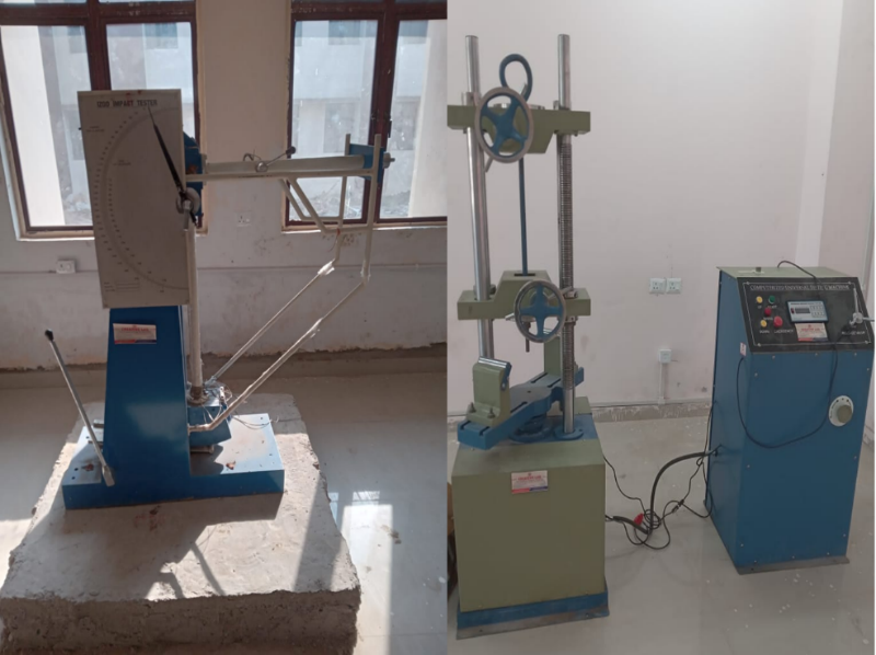 The material testing laboratory helps students understand the mechanical behaviour of different engineering materials under various loading conditions. The lab features experiments designed to evaluate various properties, including strength, hardness, toughness, ductility, and elasticity. By performing standardised tests on metals and other materials, students gain practical insight into material selection, failure mechanisms, and quality control practices. This lab plays a crucial role in linking material science fundamentals with design, manufacturing, and structural applications in mechanical engineering. This lab is equipped with the following major testing facilities: